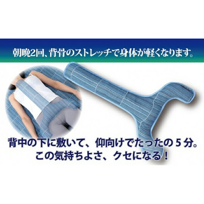 <背中枕>朝晩2回、5分程度、この背中枕の上に横になるだけで、普段はなかなか伸ばすことができない背骨周辺の筋肉をしっかり伸ばすことができます。