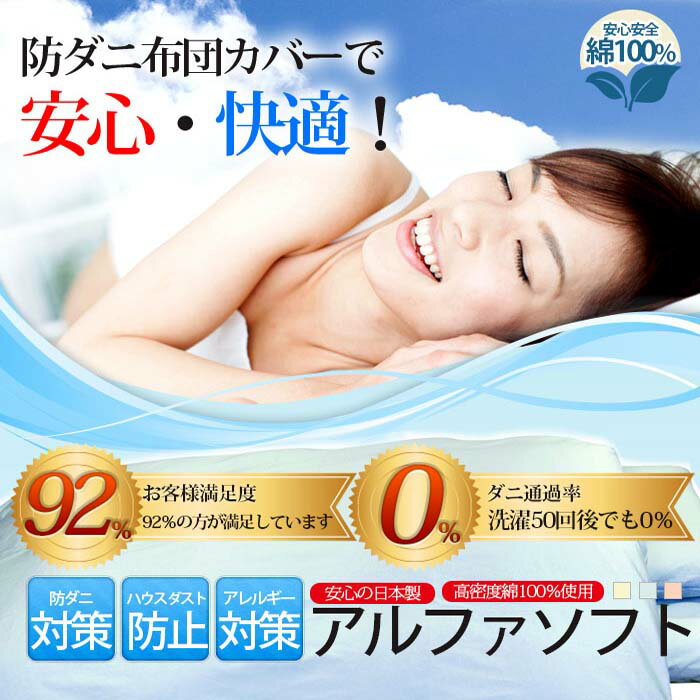 品名 防ダニ 枕カバー【ダニの通過率0%】サイズ50×70cmアルファソフト綿B色:ブルー 商品概要 お礼品の内容・特徴アルファソフト高密度生地を使用しダニの侵入をシャットアウト【ダニの通過率0%】ハウスダスト軽減の布団カバー 。