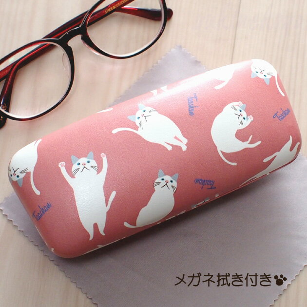 メガネケース「白猫ターチャン」メガネケース【イロイロターチャン・ピンク】(メガネ拭き付き)(ハードケース 眼鏡入れ 眼鏡ケース めがね メガネ ケース 眼鏡小物メガネ拭き付き サングラスケース 猫雑貨 猫グッズ ネコ雑貨 ねこ柄 キャット)