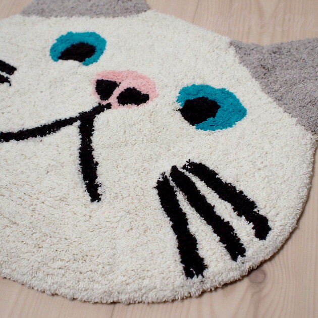 猫型マット・白猫ターチャン ダイカットマット(マット ミニマット 足ふきマット 玄関マット キッチンマット バスマット ラグ 猫雑貨 ネコグッズ ねこ キャット)