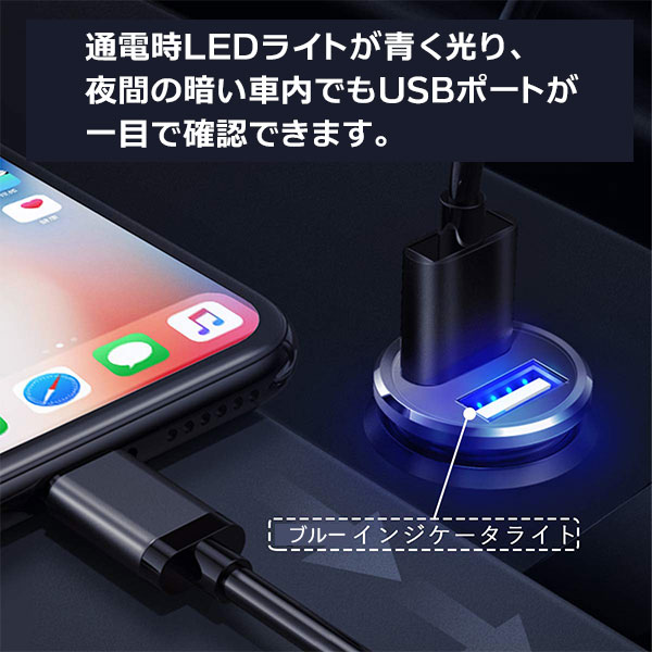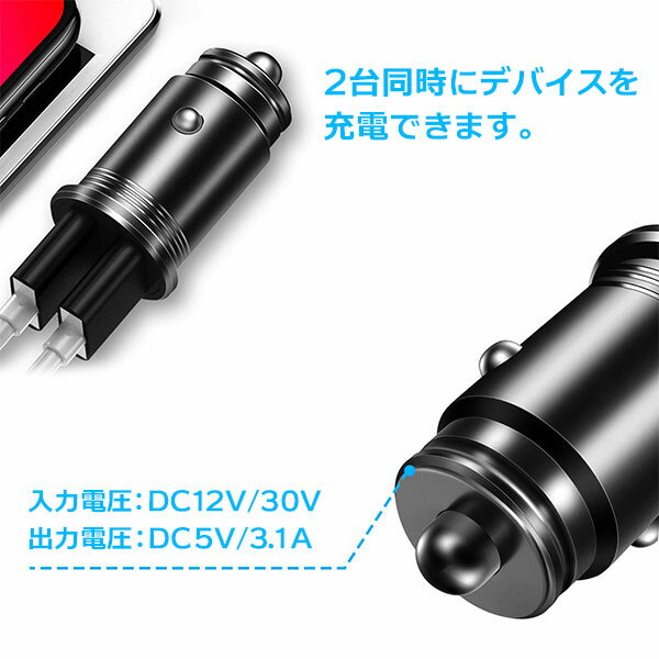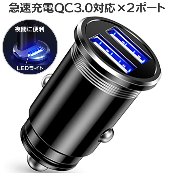 シガーソケット led イルミネーション カーチャージャー 車載 充電器 USB 2ポート 変換 急速充電 Quick Charge 3.0 対応 [入力電圧:DC12V/30V、出力電圧: DC5V/3.1A]