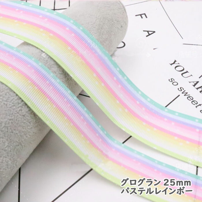サイズ 幅25mm カラー パステルレインボー 個数 1m計り売り 関連ワード リボン素材 グログラン ヘアゴム ヘアリボン 材料 素材 資材 ハンドメイド資材 レインボー 虹 2.5cm幅 ゆめかわいい ゆめかわ パステル グラデーション ●注意 ※こちらの商品は折り曲げて発送しますので、折り目がつく場合があります。